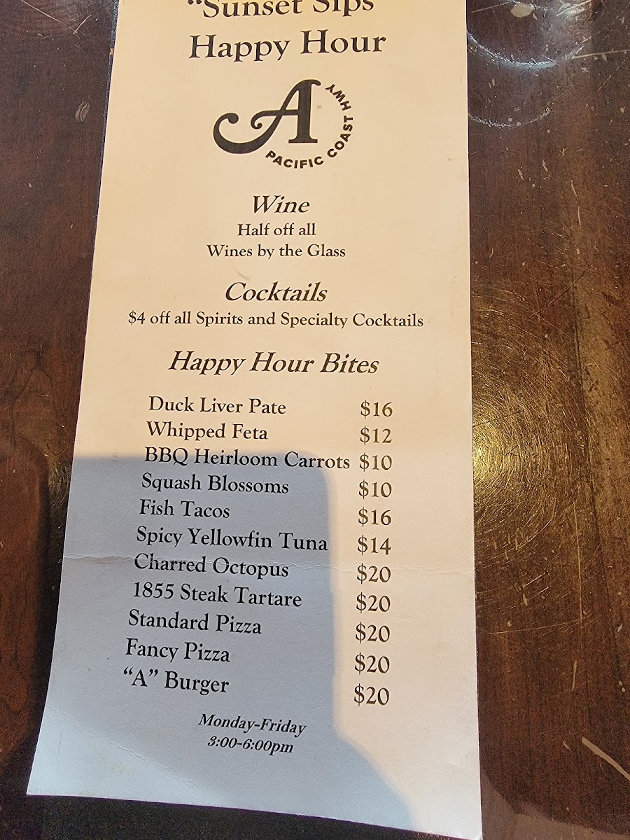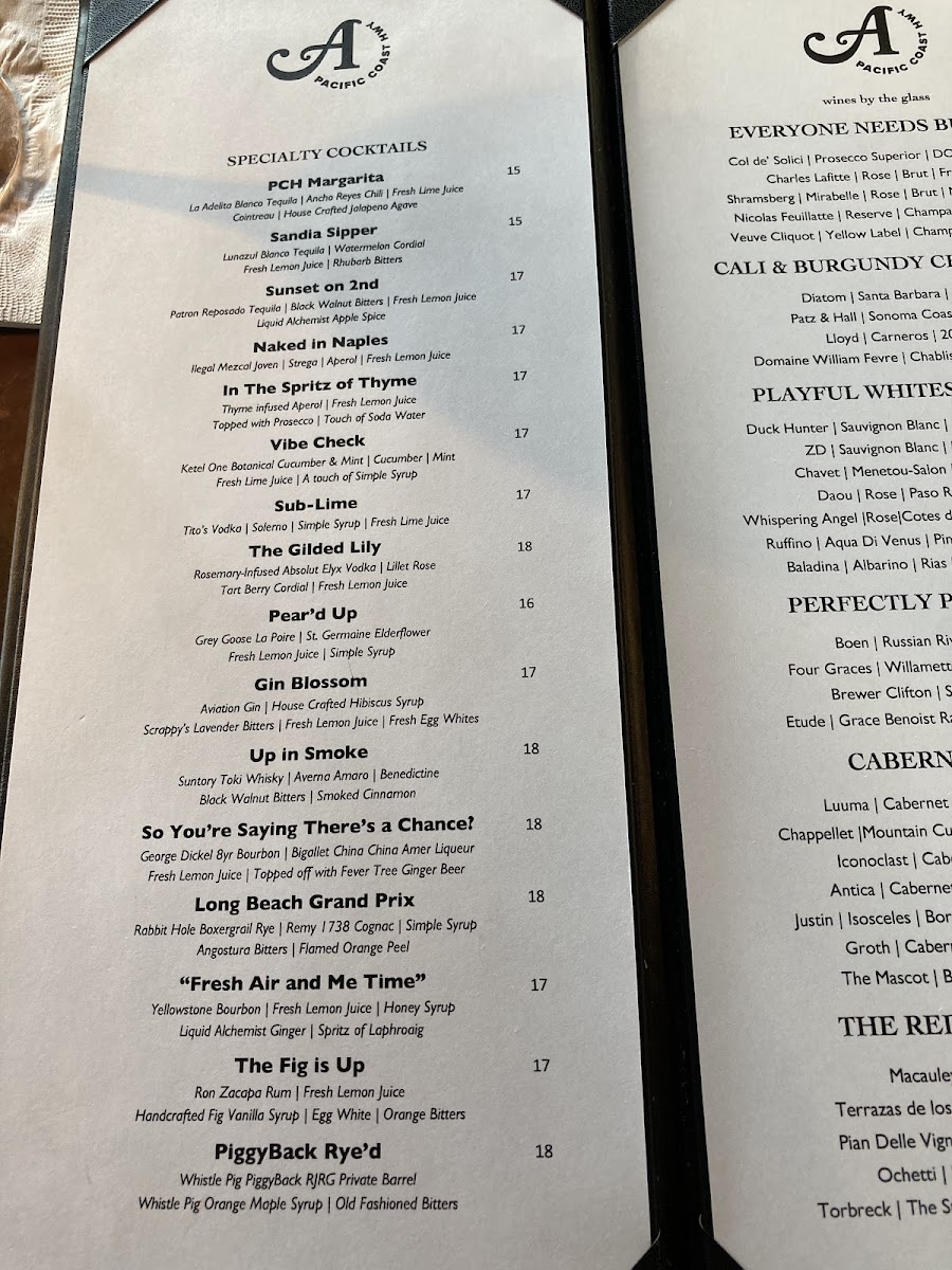 A PCH offers a thoughtfully curated American menu that strikes a balance between approachable dishes and elevated flavors. The menu feels fresh and inviting, featuring everything from shareable small plates and happy hour bites to satisfying mains that suit a leisurely dinner. Whether stopping by for a casual drink or settling in for a full meal, you’ll find options that complement the laid-back yet refined coastal atmosphere.